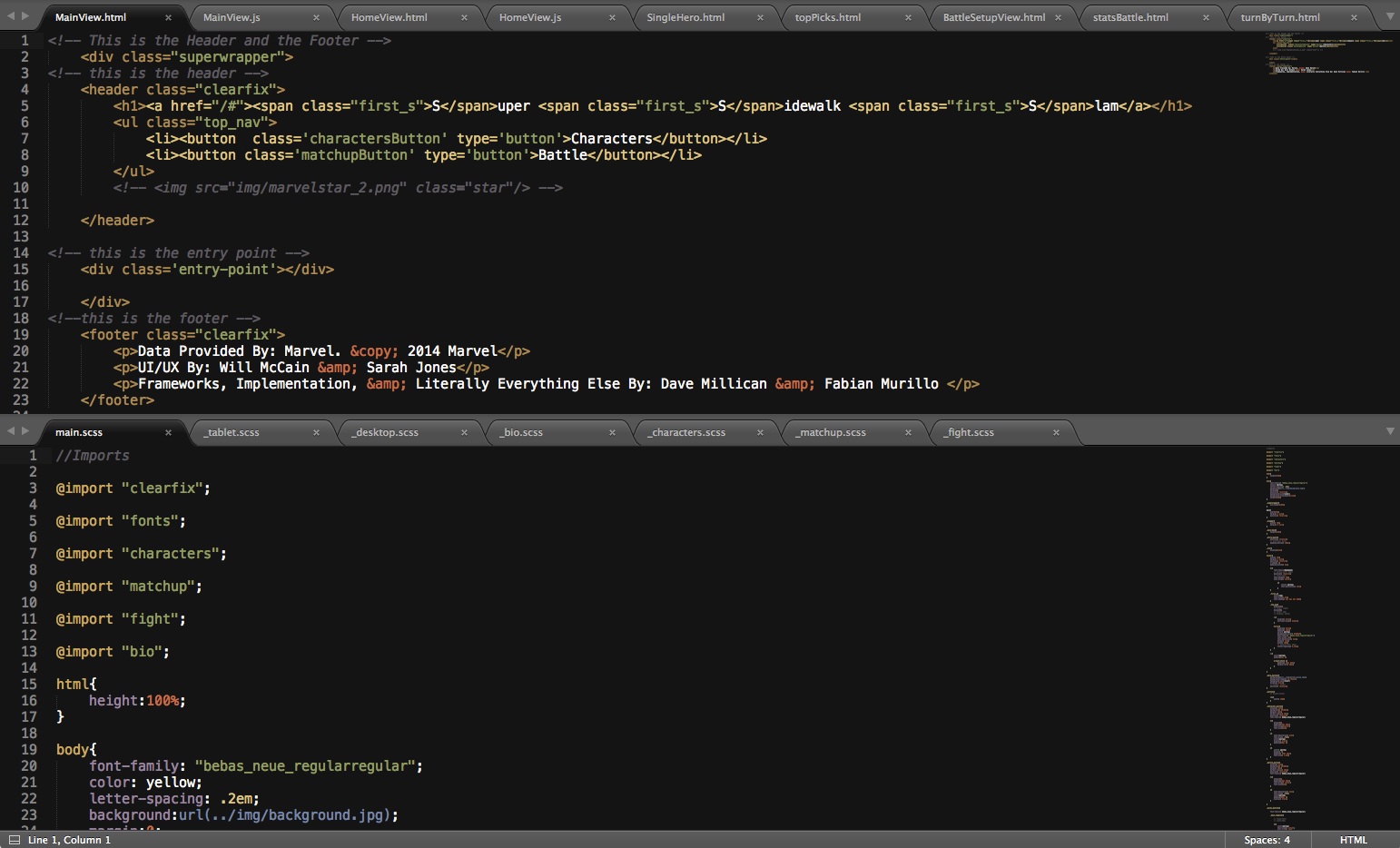 The meat and potatoes of code to the spice of design. We designers built out templates for each page with HTML5 and CSS3 using SASS. The developers took those and fit them into their frameworks.